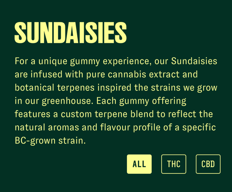 Sundaisies by Pure Sunfarms is a cannabis-infused gummy line inspired by nostalgic dessert flavors. Each gummy is infused with botanical terpenes derived from iconic cannabis strains, combining classic tastes with carefully crafted effects.